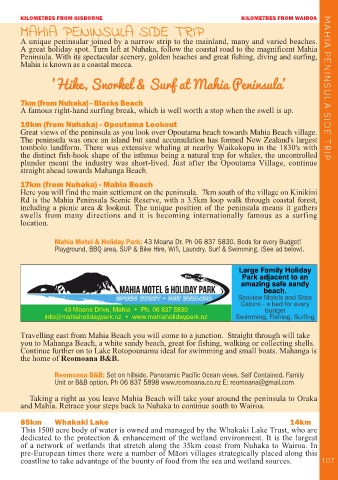 info@mahiaholidaypark.nz • www.mahiaholidaypark.nz Swimming, Fishing, Surfing