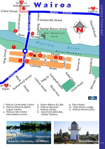 Liquor Centre. 7. Wairoa Library. 11. Wairoa Motorcycles.