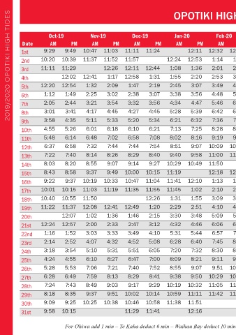 For Ohiwa add 1 min – Te Kaha deduct 6 min – Waihau Bay deduct 10 min – East Cape & Hicks Bay deduct 21 mins – Tolaga Bay deduct 40 mins