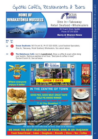 Dine-In, Takeaway, Retail Seafood, Wholsealers. See advert above. OPOTIKI BUSINESS DIRECTORY - CAFÉS, RESTAURANTS & BARS
