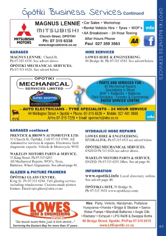 Servicing the Eastern Bay for more than 37 years www.LHEopotiki.co.nz 49