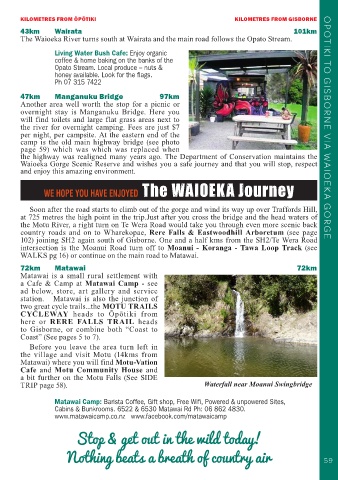the river for overnight camping. Fees are just $7 OPOTIKI TO GISBORNE VIA WAIOEKA GORGE