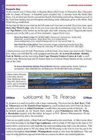 EAST CAPE KILOMETRES FROM ŌPŌTIKI KILOMETRES FROM GISBORNE