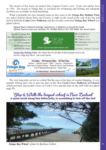 What is probably the best situated camp on this coast is the Tolaga Bay Holiday Park EAST CAPE