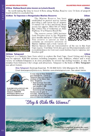 EAST CAPE KILOMETRES FROM ŌPŌTIKI KILOMETRES FROM GISBORNE EAST CAPE
