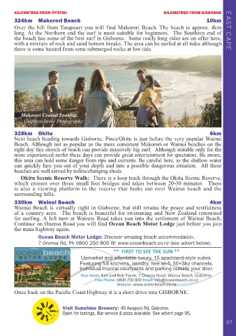 KILOMETRES FROM ŌPŌTIKI KILOMETRES FROM GISBORNE