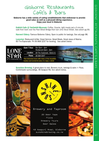 Harvest Cidery: Famous Gisborne Cidery. Open to public for tastings. See ad page 98. GISBORNE - RESTAURANTS, CAFE'S & BARS